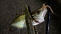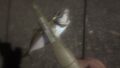 しかし海辺は風が強い。あっち行った台風がこっちにきているそうだ。まるで吉本新喜劇の舞台を走り回る間寛平師匠のよう。この風では0.4gはナニやってるかわからん。0.6gでギリギリ。たまに見失しなう。0.8も用意してるけド干潮で水深ない状況では使いたくない。0.6で辛抱しながら漂わせてると反応はある。風でラインは大きく膨らんでなびいてる。それでもアタリはちゃんと手元に感じる。しかし風で余計なラインが出てるので合わせが効かない。あまりたわませすぎるのは良くないのでラインのメンディングに気を使ってやると合わせも効くようになる。