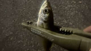 例年、真夏の大阪湾は「死んだ海」でアジもイワシもほぼ見かけません。真夏の大阪湾で見かけるのはボラとキビレくらいです。そんな死んでた大阪湾が少し息を吹き返してきたようで、豆アジが釣れました。まぁ、ちいさくてかわいいアジだこと。アジのレンジは表...